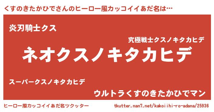 くすのきたかひでさんのヒーロー風カッコイイあだ名をツクッター!