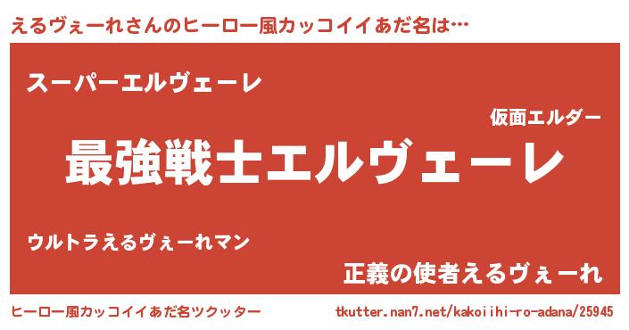 | 男性向けラノベタイトル風あだ名 | 『Re:えるヴぇーれから始める異世界生活』 |