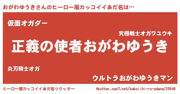 | 女子向けラノベタイトル風あだ名 | 『おがわゆうき夫妻のなれそめ』 |