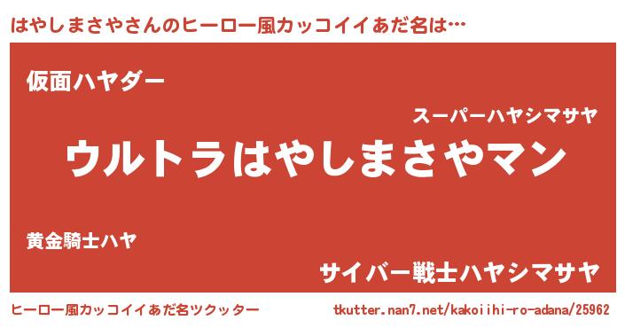 | 女子向けラノベタイトル風あだ名 | 『はやしまさやの玉の輿計画!』 |