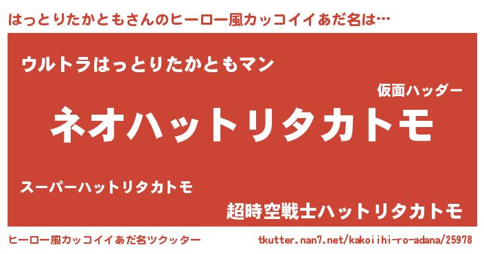 | 意味不明あだ名 | 『永久保存はっとりたかとも』 |