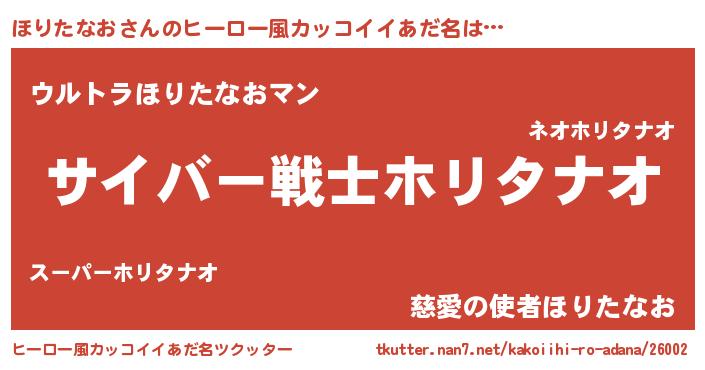 | 男性向けラノベタイトル風あだ名 | 『Re:ほりたなおから始める異世界生活』 |