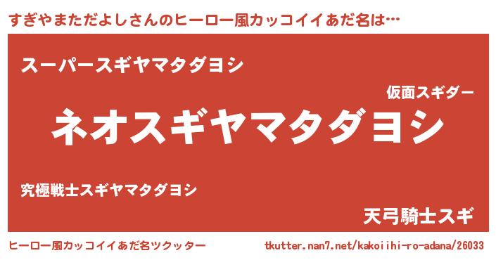 | 胡散臭い通販商品みたいなあだ名 | 『絶対に幸福をもたらす健康食品…その名も「すぎやまただよし」』 |