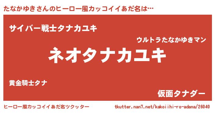 | 男性向けラノベタイトル風あだ名 | 『緋弾のタナカユキ』 |