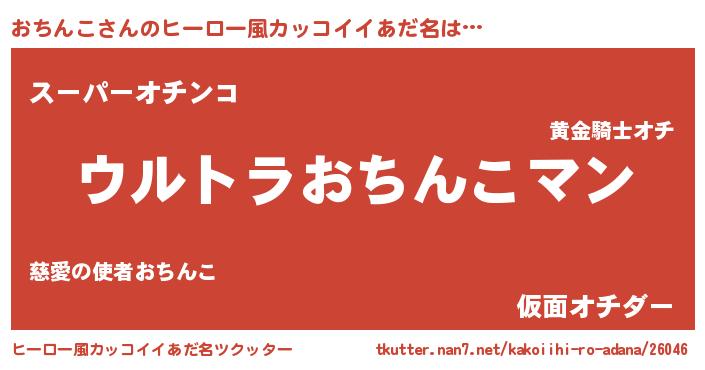| 男性向けラノベタイトル風あだ名 | 『おちんこに滅ぼされるだけの簡単なお仕事です』 |