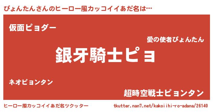 | 男性向けラノベタイトル風あだ名 | 『ぴょんたんの嫁は女の子じゃないと思った?』 |
