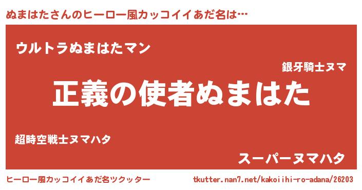 | 欧米人風あだ名 | 『ダニエルぬまはた』『マイケルぬまはた』 |
