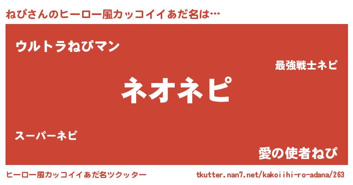 | 男性向けラノベタイトル風あだ名 | 『ねぴという概念が存在しない退屈な世界 』 |