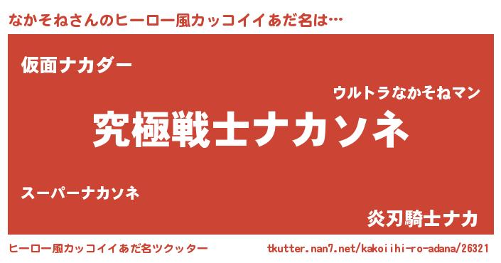 | 男性向けラノベタイトル風あだ名 | 『Re:なかそねから始める異世界生活』 |