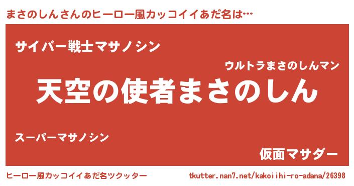 | 男性向けラノベタイトル風あだ名 | 『ノーゲーム・ノーマサノシン』 |