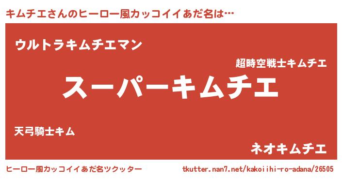 | 男性向けラノベタイトル風あだ名 | 『キムチエに滅ぼされるだけの簡単なお仕事です』 |