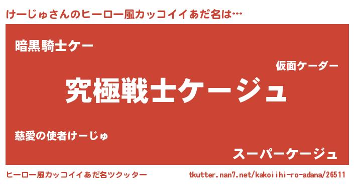 | 男性向けラノベタイトル風あだ名 | 『Re:けーじゅから始める異世界生活』 |