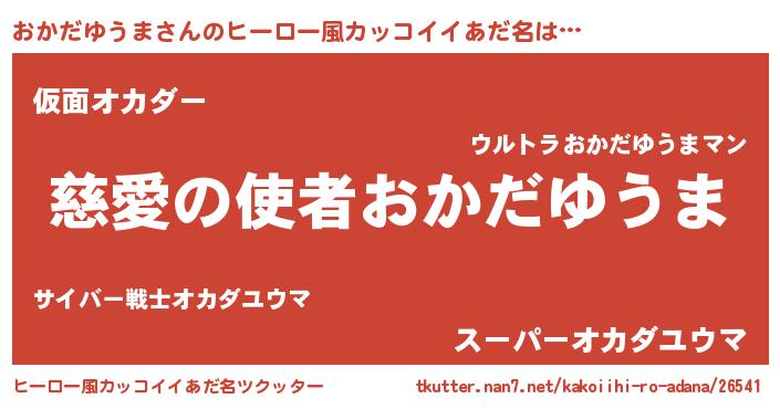 | 男性向けラノベタイトル風あだ名 | 『ノーゲーム・ノーオカダユウマ』 |