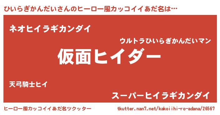 | 伝説のあだ名 | 『古より伝わる暗殺者ひいらぎかんだい』 |