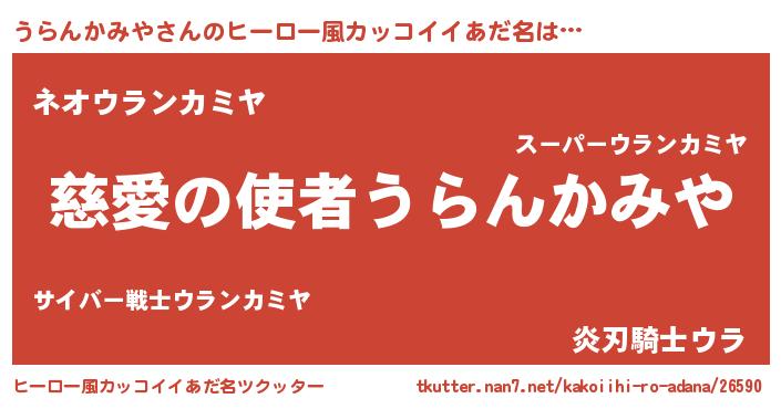 | 男性向けラノベタイトル風あだ名 | 『ノーゲーム・ノーウランカミヤ』 |