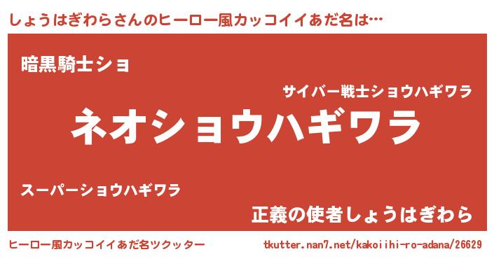 | ヘコむあだ名 | 『しょうはぎわら(笑)』『しょ太郎』 |