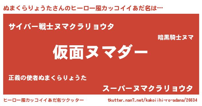 | 意味不明あだ名 | 『住所不定無職ぬまくらりょうた(14歳)』 |