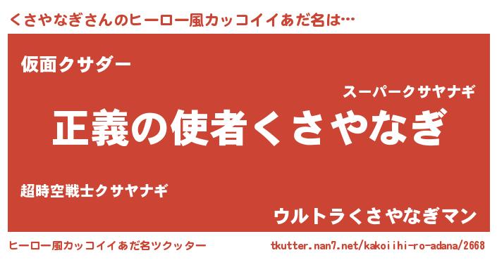 | 女子向けラノベタイトル風あだ名 | 『くさやなぎ夫妻のなれそめ』 |