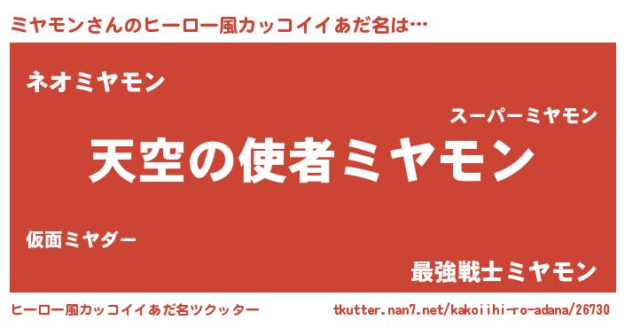 | 男性向けラノベタイトル風あだ名 | 『ミヤモンに滅ぼされるだけの簡単なお仕事です』 |
