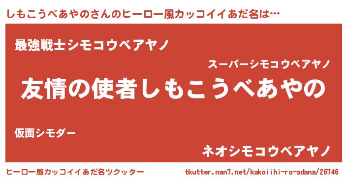 | 胡散臭い通販商品みたいなあだ名 | 『100人中100人が認めたイリジウム磁石…その名も「しもこうべあやの」』 |