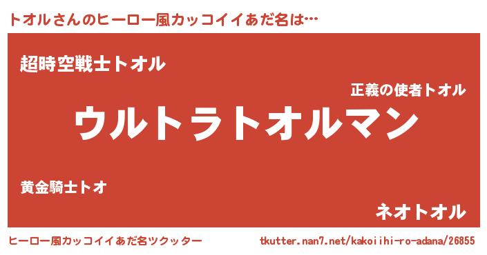 | 男性向けラノベタイトル風あだ名 | 『やはりトオルの青春ラブコメはまちがっている 』 |