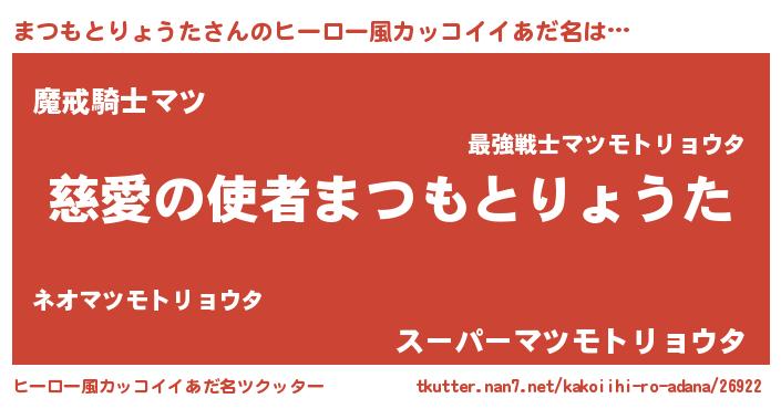 | 男性向けラノベタイトル風あだ名 | 『ノーゲーム・ノーマツモトリョウタ』 |