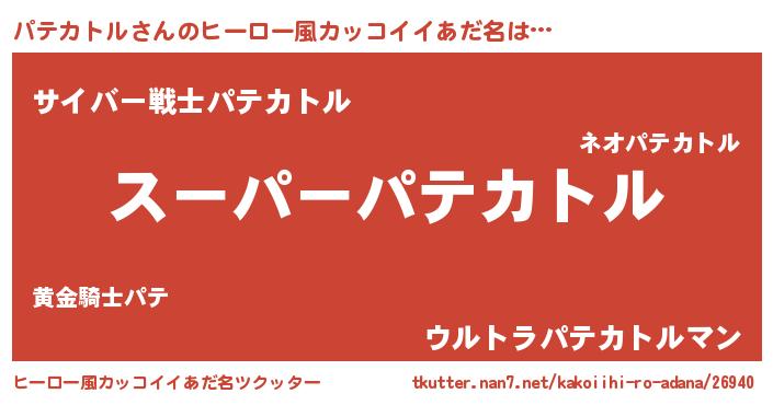 | 男性向けラノベタイトル風あだ名 | 『緋弾のパテカトル』『パテカトルの憂鬱』 |