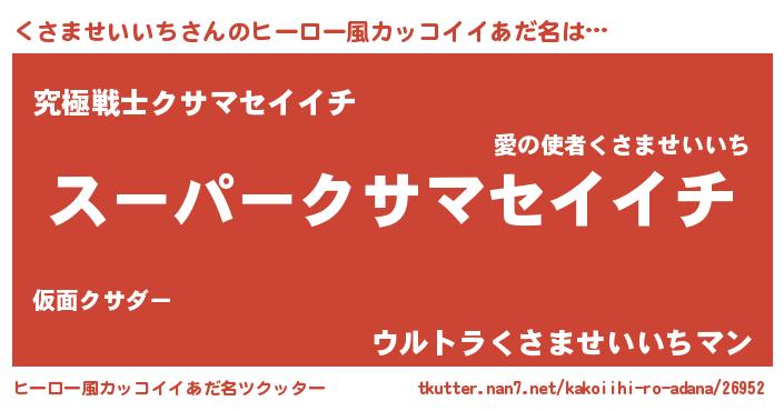| 男性向けラノベタイトル風あだ名 | 『クサマセイイチアートオンライン』 |