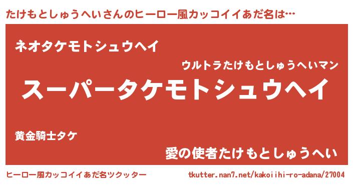 | ヘコむあだ名 | 『たけもー』『たけもとしゅうへい(震え声)』 |