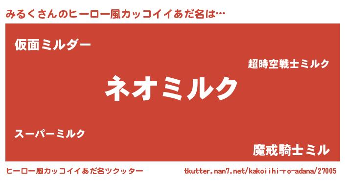 ポケモン風あだ名 | 『ゼニミル』『ミールイ』『ミルゴンZ』 |