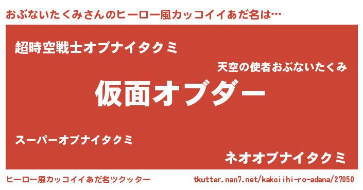 | 男性向けラノベタイトル風あだ名 | 『オブナイタクミスレイヤー』 |