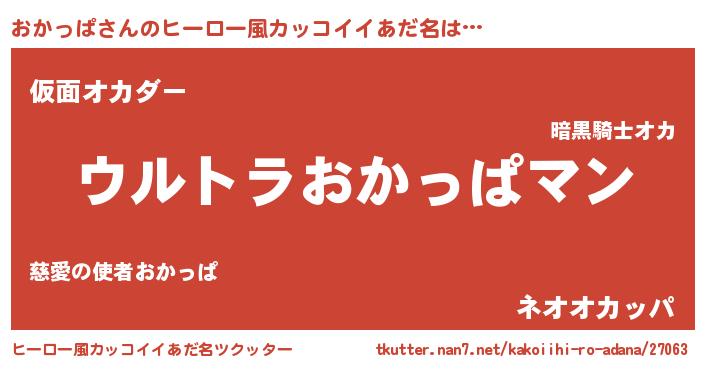 | 男性向けラノベタイトル風あだ名 | 『うちの娘の為ならば、俺はもしかしたらおかっぱも倒せるかもしれない。』 |