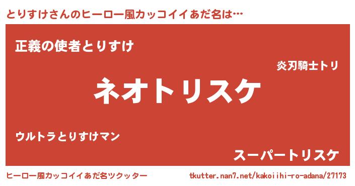 | 胡散臭い通販商品みたいなあだ名 | 『絶対に幸福をもたらす健康食品…その名も「とりすけ」』 |