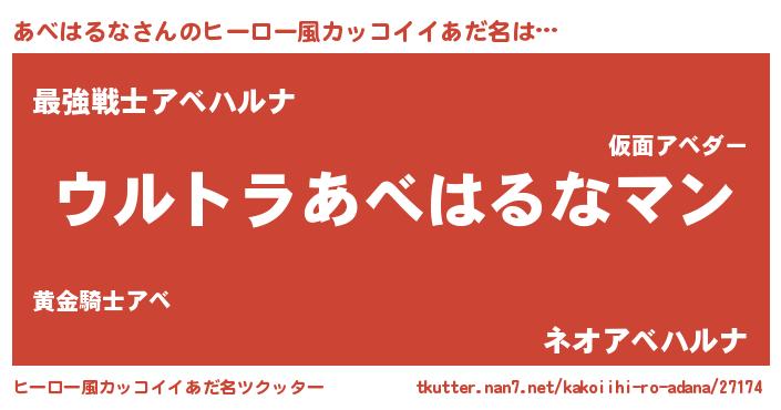 | 男性向けラノベタイトル風あだ名 | 『アベハルナスレイヤー』 |