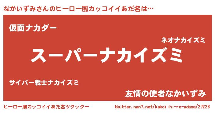 | 男性向けラノベタイトル風あだ名 | 『なかいずみに滅ぼされるだけの簡単なお仕事です』 |