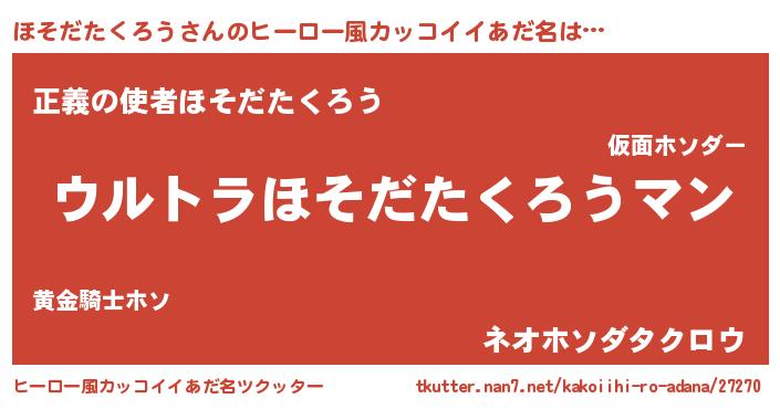 | 意味不明あだ名 | 『ほそだたくろうフォーエバー』 |