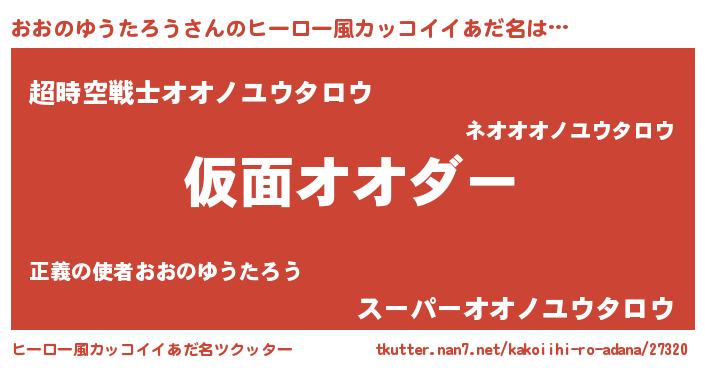| 男性向けラノベタイトル風あだ名 | 『おおのゆうたろうに滅ぼされるだけの簡単なお仕事です』 |