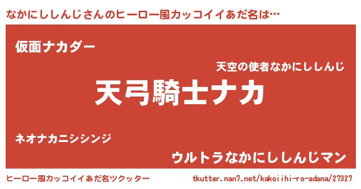 | 男性向けラノベタイトル風あだ名 | 『なかにししんじの嫁は女の子じゃないと思った?』 |