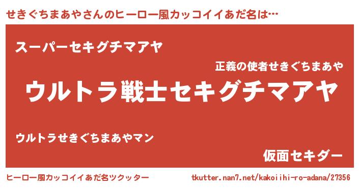 せきぐちまあやさんのヒーロー風カッコイイあだ名をツクッター!