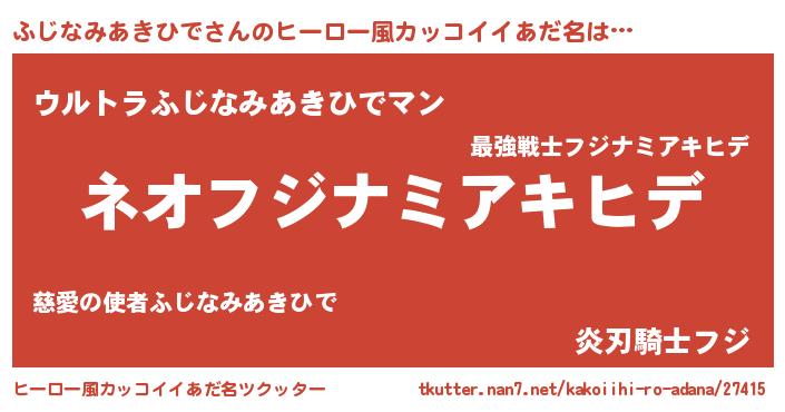| 男性向けラノベタイトル風あだ名 | 『転生したらふじなみあきひでだった件』 |