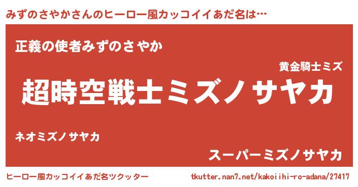 | 女子向けラノベタイトル風あだ名 | 『みずのさやかなんてお断りですっ。』 |