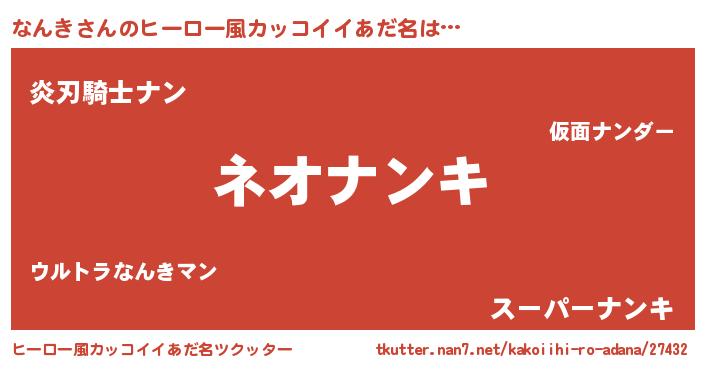 | ポケモン風あだ名 | 『ゼニナン』『ヒナンキ』『ナーンイ』 |