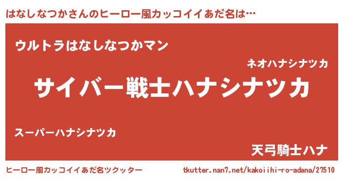 | 男性向けラノベタイトル風あだ名 | 『はなしなつかに滅ぼされるだけの簡単なお仕事です』 |