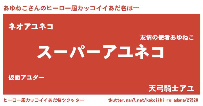 | 男性向けラノベタイトル風あだ名 | 『あゆねこの憂鬱』『緋弾のアユネコ』 |