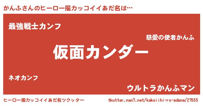 | 男性向けラノベタイトル風あだ名 | 『魔弾の王とかんふ』 |