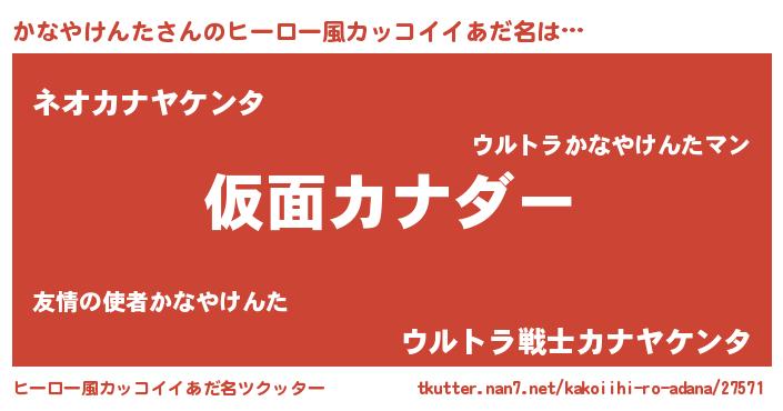 | 男性向けラノベタイトル風あだ名 | 『魔弾の王とかなやけんた』 |