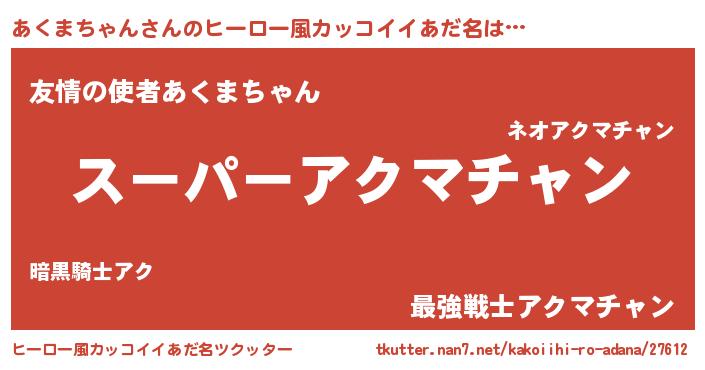 | 男性向けラノベタイトル風あだ名 | 『アクマチャンアートオンライン』 |