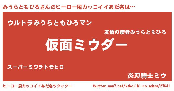 | 意味不明あだ名 | 『住所不定無職みうらともひろ(12歳)』 |