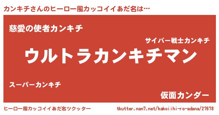 | 男性向けラノベタイトル風あだ名 | 『カンキチに滅ぼされるだけの簡単なお仕事です』 |