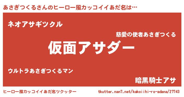 | 男性向けラノベタイトル風あだ名 | 『この素晴らしい世界にあさぎつくるを!』 |